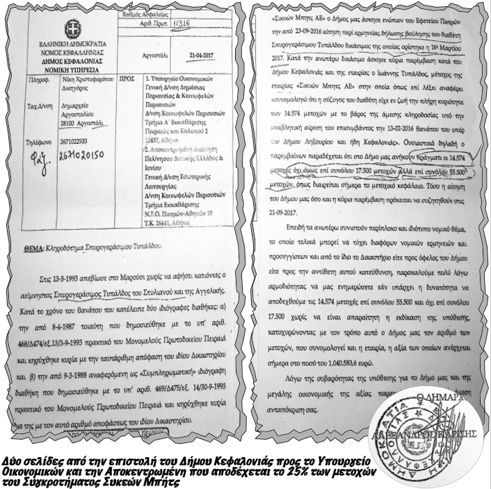 Μάλιστα ο Δήμαρχος σε κάποιο σημείο της απάντησής του σημειώνει ότι «ο Δήμος Κεφαλλονιάς ενημερώθηκε για την ύπαρξη της παραπάνω κληρονομιάς από το ως άνω σχετικό έγγραφό σας»!!!