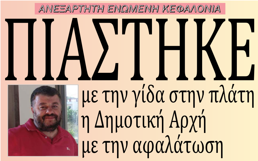 Η Δημοτική Αρχή συνελήφθη με τη γίδα στη πλάτη για το έργο της Αφαλάτωσης του νερού του Αργοστολίου τονίζει σε χθεσινή ανακοίνωση της η Παράταξη της αξιωματικής αντιπολίτευσης (Θεόφιλος Μιχαλάτος) τονίζοντας ότι η Αρχή Εξετάσεις Προδικαστικών Προσφυγών ακύρωσε το διαγωνισμό χαρακτηρίζοντας τη διαδικασία «παράνομη και ακυρωτέα»