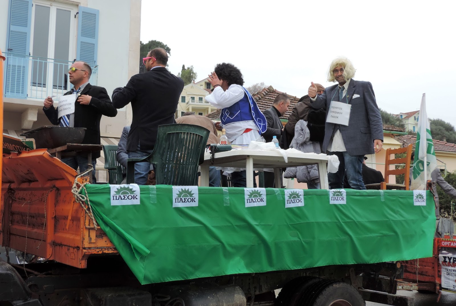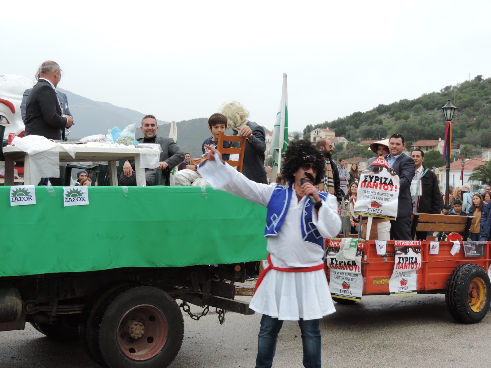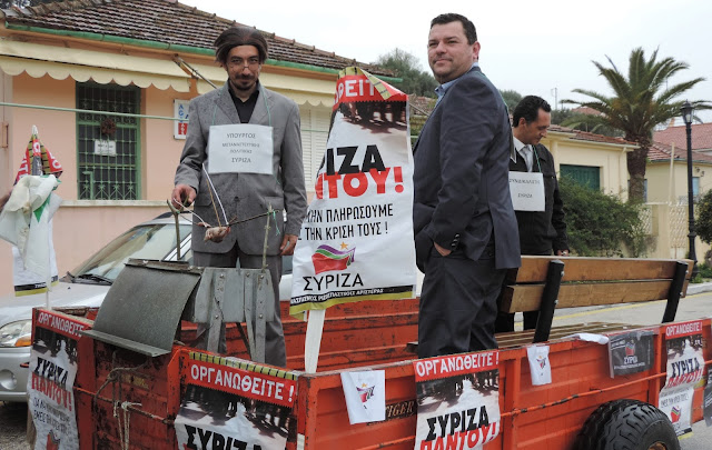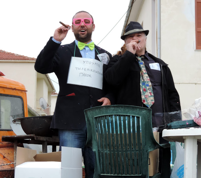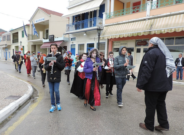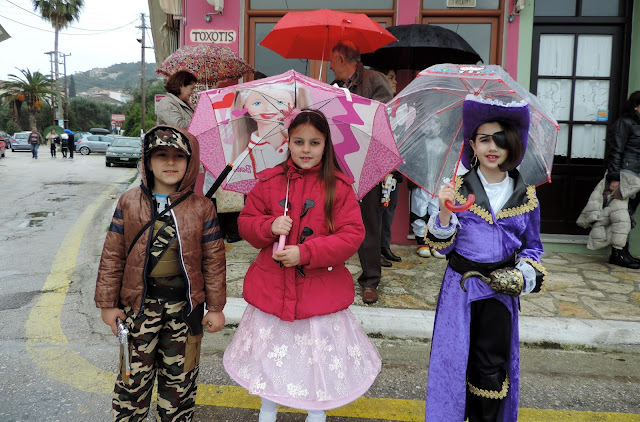 Σ΄ένα ξανάσασμα του ψιλόβροχου έγινε η αποκριάτικη παρέλαση στο Θιάκι. Θλίψη προξένησε η εμφάνιση πολιτικών βρικολάκων ενώ η έκπληξη του φετινού καρναβαλιού ήταν ο Αρτέμης Σόρρ(η)ς ο οποίος φορτωμένος χρήμα υποσχέθηκε να μας βγάλει από την κρίση. Και του χρόνου.