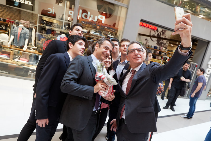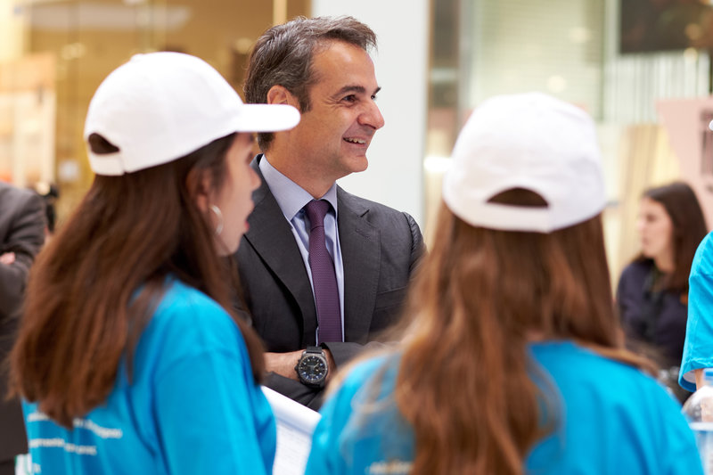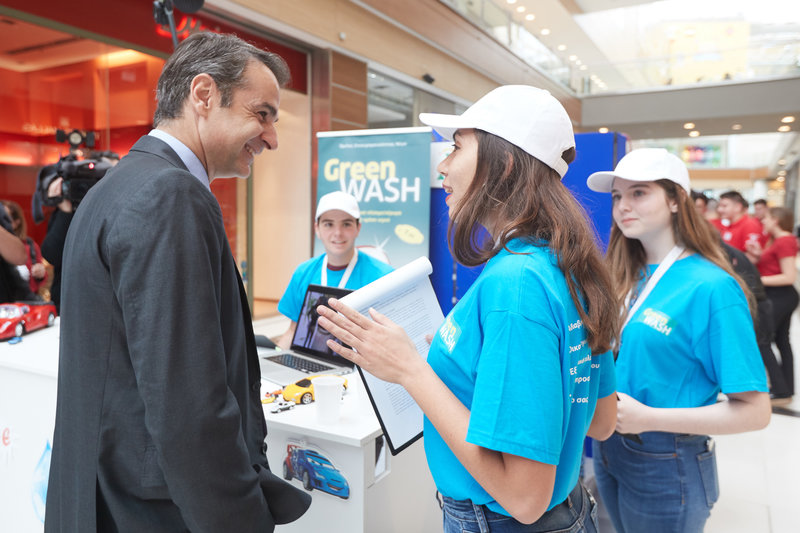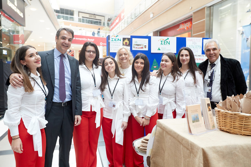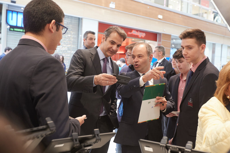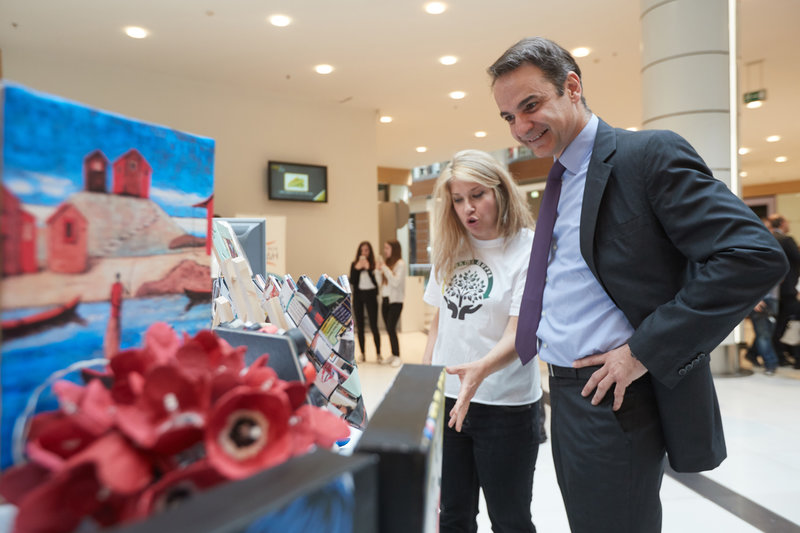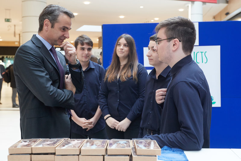 Ο πρόεδρος της ΝΔ συνομίλησε με παιδιά που ασχολούνται με τη μαθητική επιχειρηματικότητα και επισκέφτηκε τα περίπτερα όπου ενημερώθηκε για τις ιδέες τους.