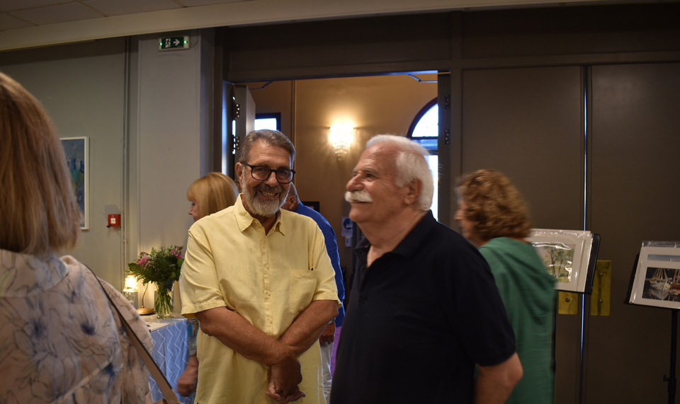 Η προσέλευση του κόσμου ήταν εντυπωσιακή – η αίθουσα γέμισε από ανθρώπους κάθε ηλικίας, φίλους της τέχνης, μαθητές και συνοδοιπόρους του καλλιτέχνη, ενώ οι κόρες του, Έφη και Άντζελα, δεν προλάβαιναν να υποδέχονται επισκέπτες.