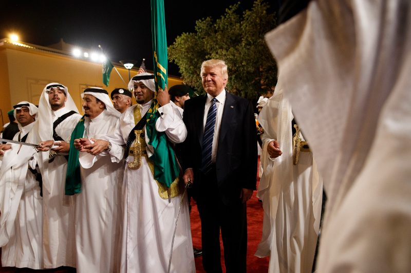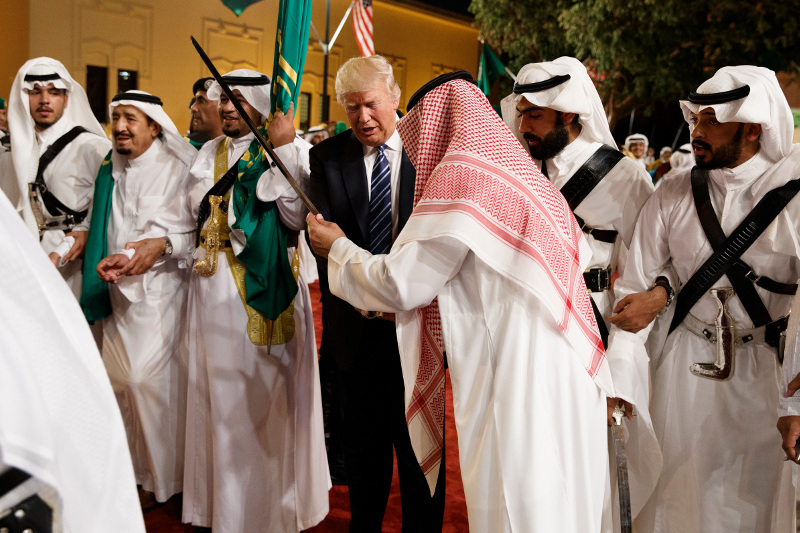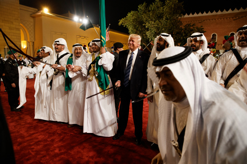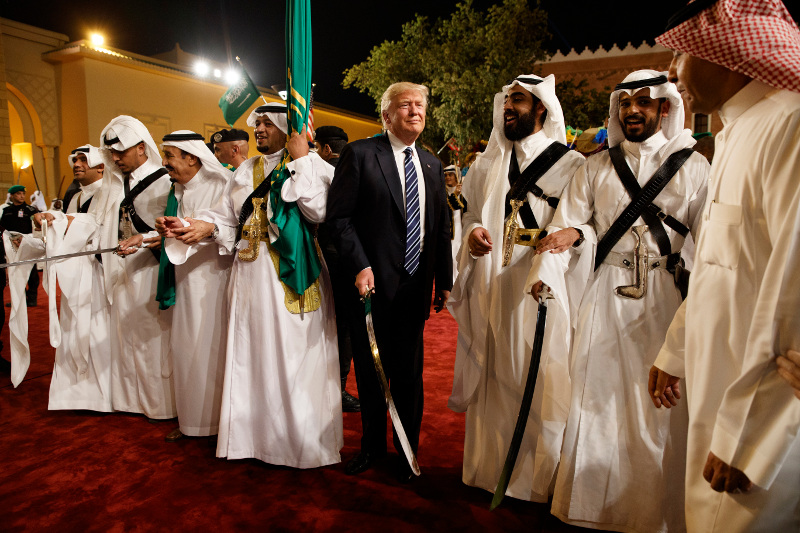 Μετά το κλείσιμο του ασύλληπτου deal των 380 δισ. Για εξοπλιστικά με τον βασιλιά της Σαουδικής Αραβίας, Σαλμάν μπιν Αμπντουλαζίζ, ο πρόεδρος των ΗΠΑ δεν αρνήθηκε να συμμετάσχει στον παραδοσιακό χορό με ξίφη Ardah.