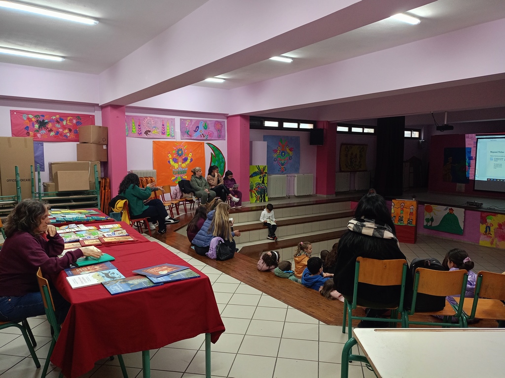 Πραγματοποιήθηκε χθες Πέμπτη 2/4 στο σχολείο μας η προγραμματισμένη εκδήλωση του Συλλόγου Διδασκόντων του Σχολείου μας για την Παγκόσμια Ημέρα Παιδικού Βιβλίου. Τίτλος της εκδήλωσης ήταν “Ο Ποιητής και η Ζωγράφος” και ήταν αφιερωμένη στον συγγραφέα Χρήστο Μπουλώτη και την εικονογράφο Φωτεινή Στεφανίδη.
