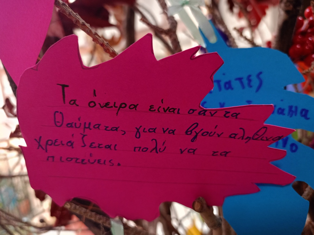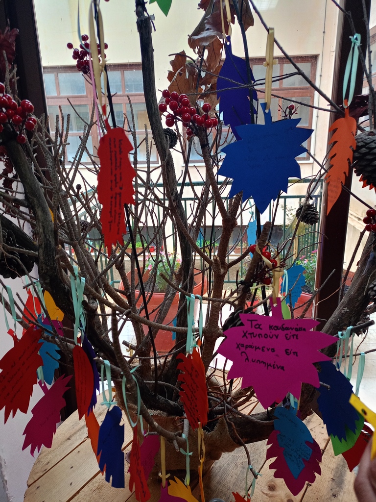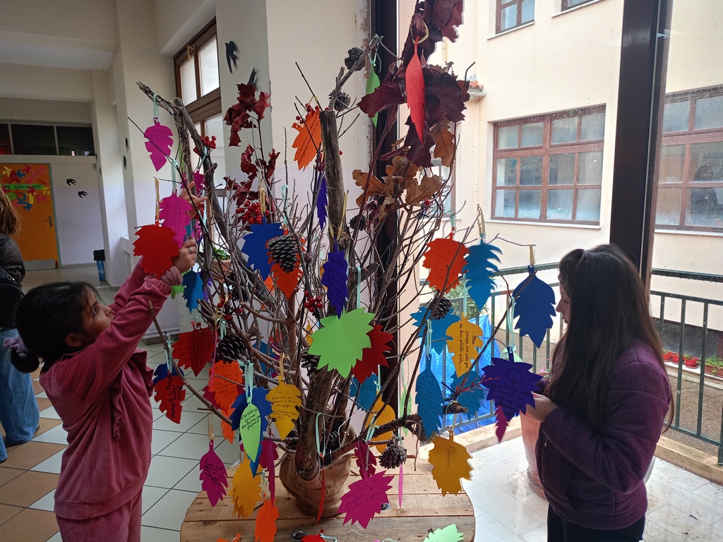 * Δράση του Συλλόγου Γονέων με τοποθέτηση φύλλων στο δέντρο του Συλλόγου με φράσεις από τα βιβλία του συγγραφέα όπου τις έγραψαν τα παιδιά όλων των τάξεων.