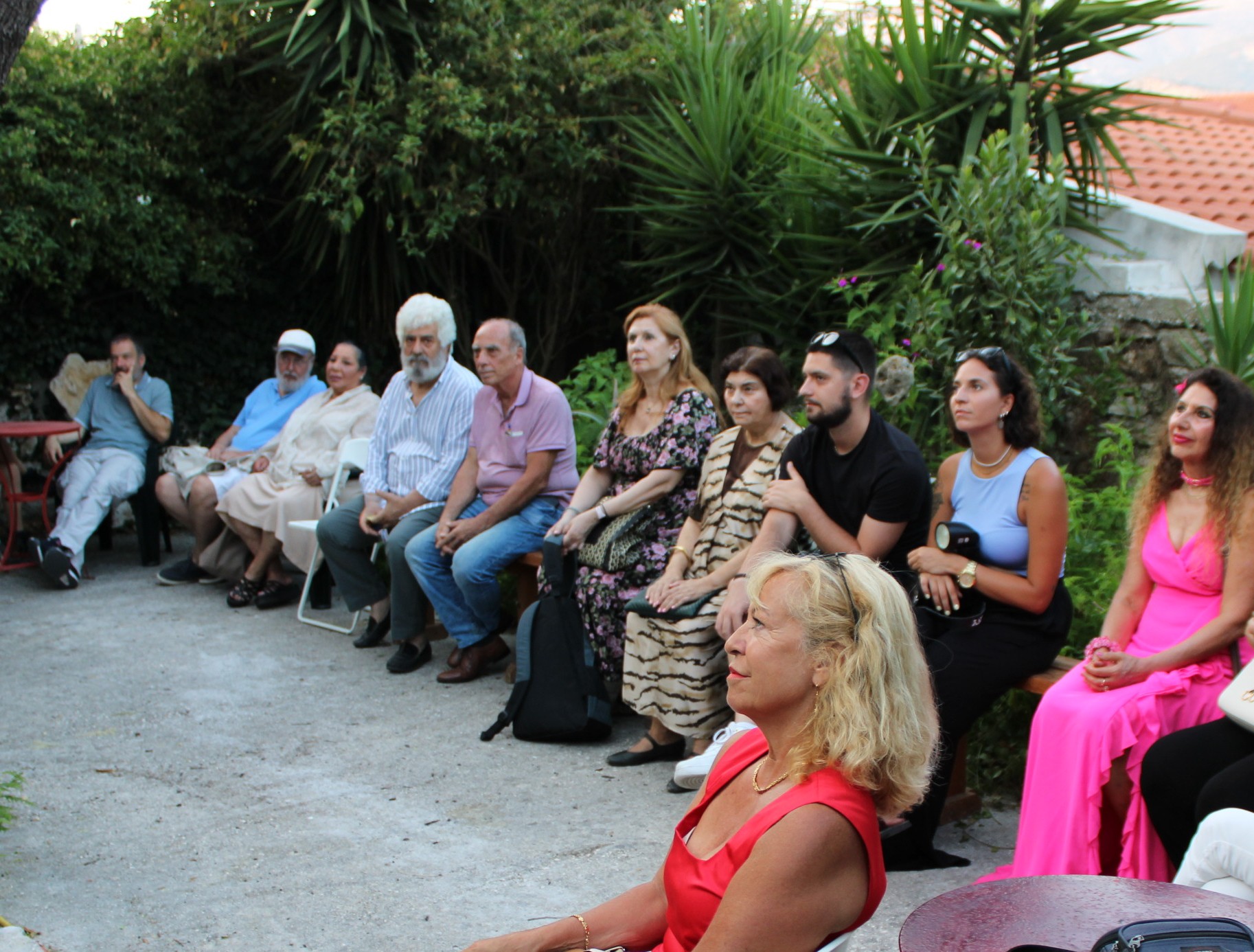 Οι επιτυχημένες πρώτες εκδηλώσεις ολοκληρώθηκαν με δεξίωση στον κατάφυτο κήπο με γλυκίσματα, προσφορά της παραδοσιακής “Βοσκοπούλας” και εκλεκτά προιόντα του νησιού.