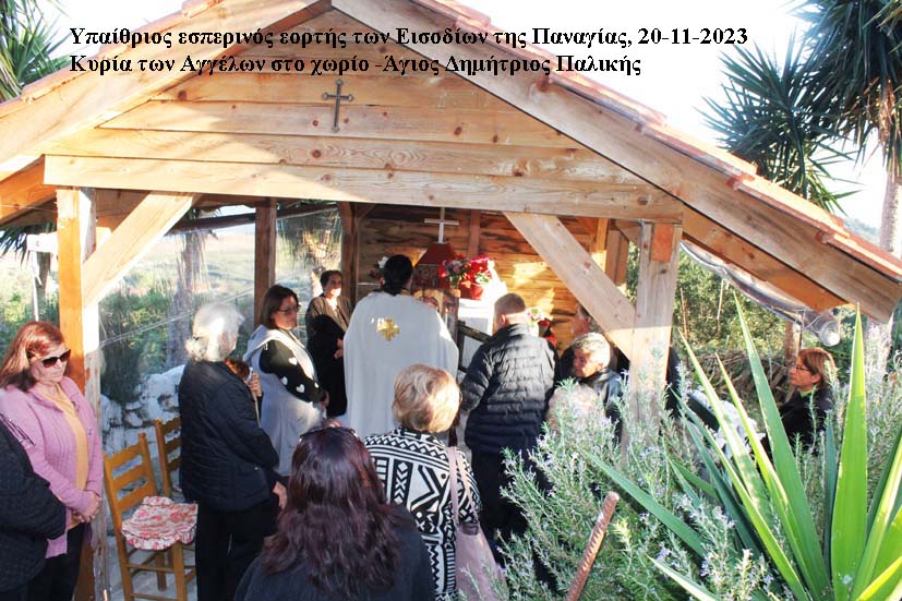 Πραγματοποιήθηκε και φέτος ευλαβικότατα ο υπαίθριος εσπερινός της Παναγίας της Μισοσπορίτισσας ( Εορτή των Εισοδίων της Θεοτόκου) στα ερείπια της παλιάς εκκλησίας της Ιεράς Μονής της Κυρίας των Αγγέλων Παλικής.