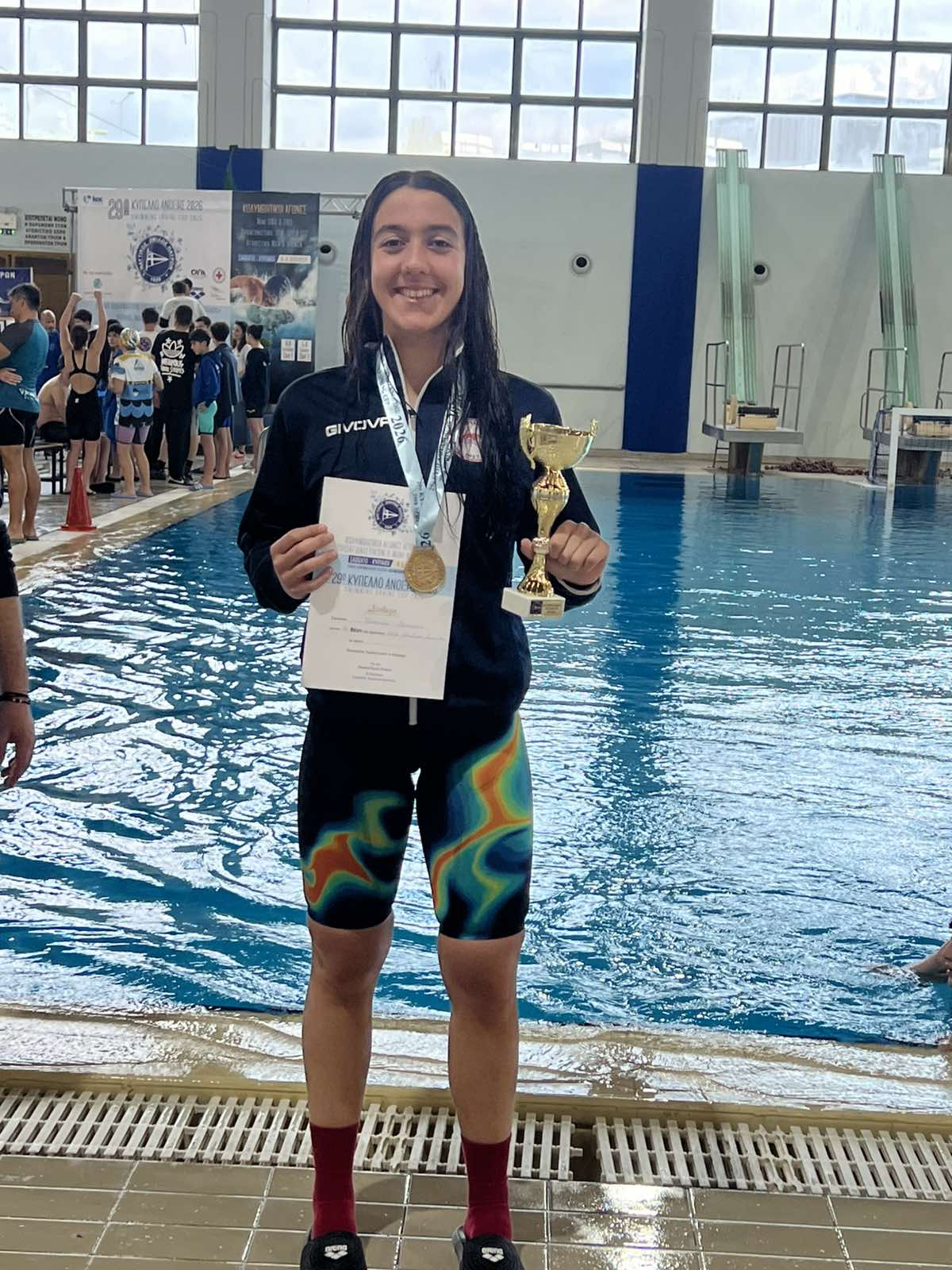 Καγκάδη Σοφία : 1η στα 100μ. ελεύθερο με χρόνο 01.00.55 , κατακτώντας την 1η θέση από όλες τις κατηγορίες κέρδισε το κύπελλο για την καλύτερη επίδοση στο αγώνισμα, 1η στα 200μ. ελεύθερο με χρόνο 02.13.32, 1η στα 50μ. ελεύθερο με χρόνο 28.52 και 1η στα 50μ. πεταλούδα με χρόνο 30.02(όλοι οι χρόνοι είναι ΟΡΙΑ ΠΑΝΕΛΛΗΝΙΩΝ ΑΓΩΝΩΝ).