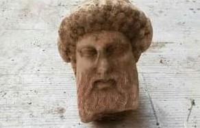 η κεφαλή τού οποίου είναι απότμημα Ερμαϊκής στήλης,