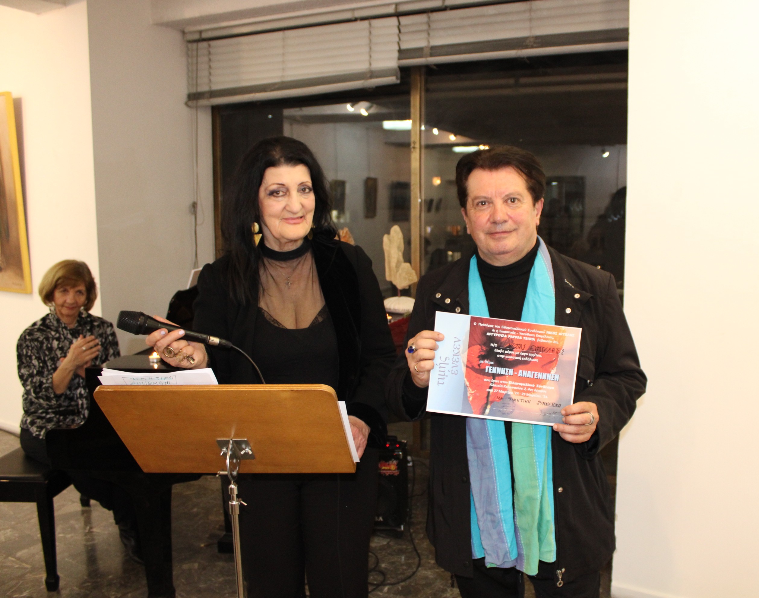 Στην ομαδική έκθεση με τίτλο “Γέννηση- Αναγέννηση” συμμετείχε ως τιμώμενος καλλιτέχνης ο Κώστας Ευαγγελάτος, ζωγράφος, ποιητής, Θεωρητικός της τέχνης.