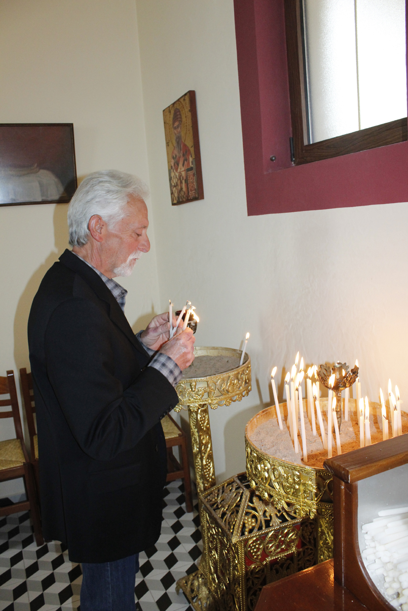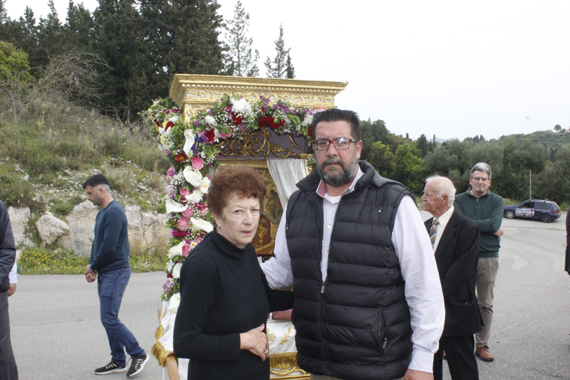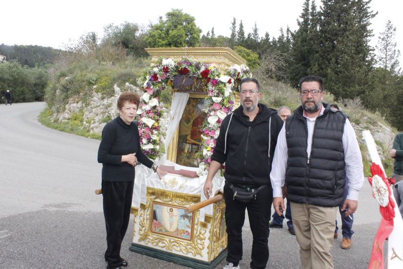 Σε κάθε στάση μια μνήμη, μια δέηση για υγεία, ένας σεβασμός και μια αγάπη, αλλά και ό,τι είχε ο καθένας να δώσει για το πανηγύρι του χωριού του, απλόχερα και με πίστη προσφερόταν. Επίσης, συγκινητική ήταν η στάση στο σπίτι του μακαρίτη γυμνασιάρχη Διονυσίου Θεοδωράτου, όπου η αγαπημένη όλων μας, η Σταματούλα, η γυναίκα του, είχε στρώσει τραπέζι με εδέσματα και γλυκίσματα και τόσα άλλα για να ευχαριστήσει τους λιτανεύοντας την εικόνα. Τα παιδιά της, Χρήστος και ο Σπύρος μαζί της, αλλά και ο πατέρας τους ο αξέχαστος Διονύσης, έστεκε με αναμμένο το κανδήλι του,… στο παράθυρο η φωτογραφία του και δίπλα τα όμορφα λευκά άνθη. Μας κοιτούσε η φωτογραφία του και μου φάνηκε πως, μας χαμογελούσε ικανοποιημένος, γιατί, για ακόμη μια φορά η θρησκευτική λιτανεία έφτασε στην αυλή του!