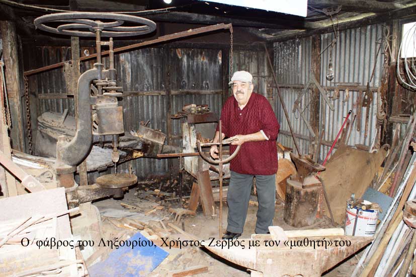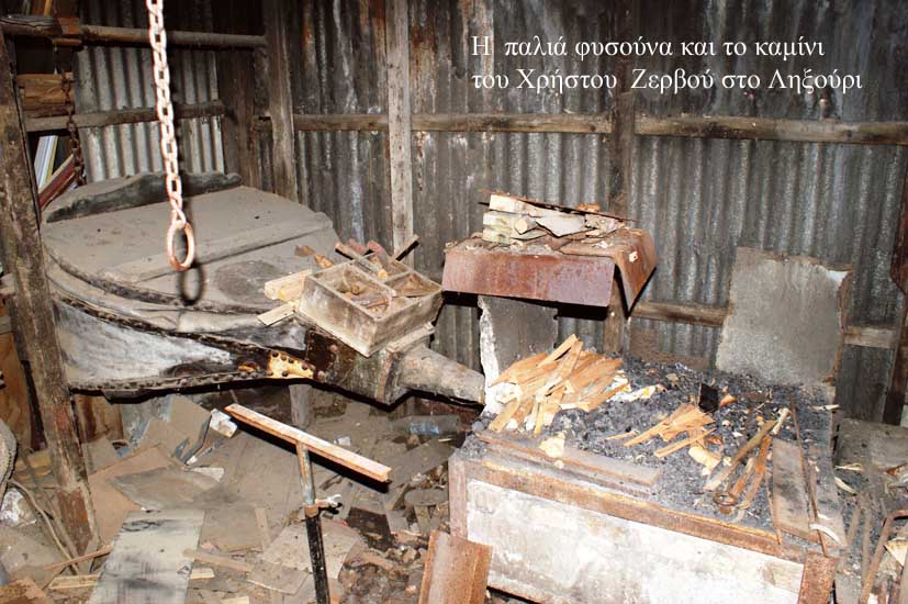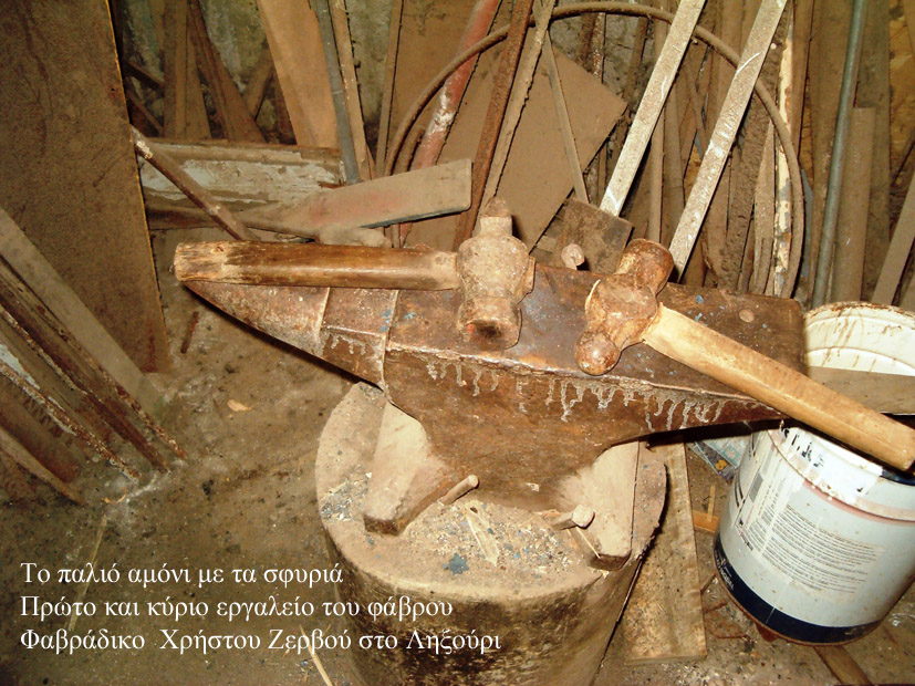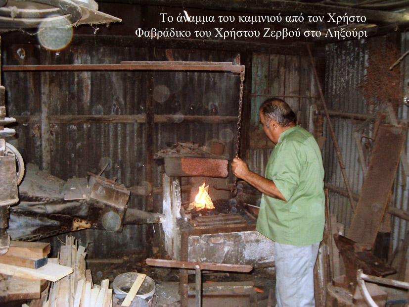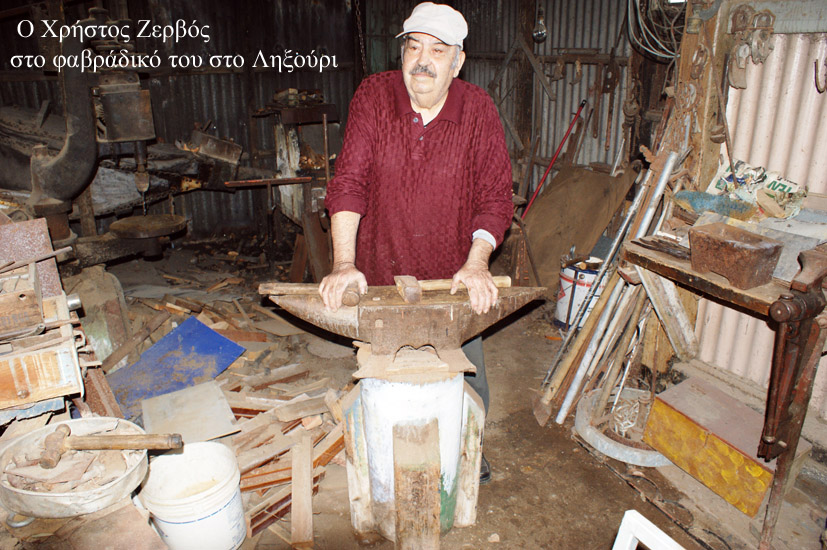 Στο προσεισμικό Ληξούρι υπήρχαν αρκετοί σιδηρουργοί. Σε δυο σιδηρουργεία, του Παναγή Μωραΐτη (Καλαμούρη) και του Διονύση Ραυτόπουλου (Μπαμπάνος), μαθήτευσε από μικρός, σε ηλικία 12 χρόνων, ο Χρήστος Γερασίμου Ζερβός την τέχνη του σιδηρουργού και την εξάσκησε έως πριν λίγα χρόνια.