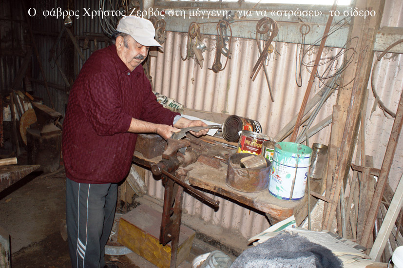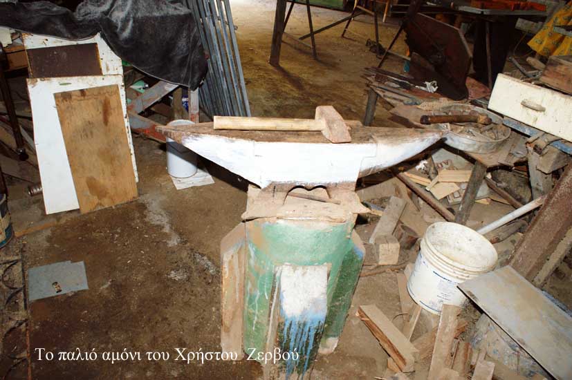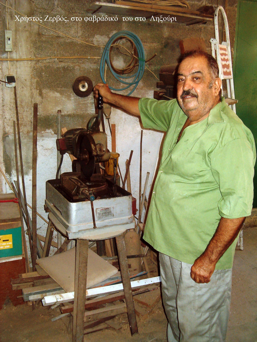 Ο Χρήστος Ζερβός δούλεψε σκληρά και παραδοσιακά με το αμόνι και το σφυρί. Άναβε καθημερινά το καμίνι του και έδινε όμορφα σχήματα στο σίδηρο. Σιδερένιες πόρτες και κάγκελα, μεντεσέδες, κιγκλιδώματα διαφόρων σχημάτων, σιδερένια παραδοσιακά κρεβάτια και καρέκλες, σιδερένιες σκάλες, ήταν έργα που έφτιαχνε συχνά. Του παράγγελναν οι αγρότες της περιοχής να τους φτιάξει πυροστιές, ξινάρια, αλέτρια, κλαδευτήρια, υνί και άλλα γεωργικά εργαλεία, απαραίτητα για τις δουλειές τους. Επίσης, τρόχιζε κάθε κοφτερό εργαλείο και το διόρθωνε αν χρειαζόταν. Ο καθένας που ήθελε μια μικροδουλειά η οποία είχε σχέση με μέταλλο, έτρεχε στο Χρήστο για να τον εξυπηρετήσει και κείνος πρόθυμος άρπαζε τα εργαλεία και δίνε το καλό αποτέλεσμα.