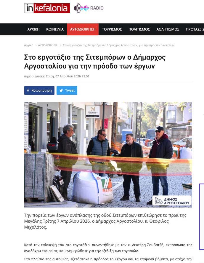 Μεγάλη Τρίτη θυμήθηκε το πολύπαθο έργο της ανάπλασης της Σιτεμπόρων και πήγε να το επιθεωρήσει για …ΠΡΩΤΗ ΦΟΡΑ εδώ και δυό χρόνια (από τον Φλεβάρη 2024) που έχει ξεκινήσει. Προφανώς, για το θεαθήναι και στα μουλωχτά (σιγά μη κουβέντιαζε με τους καταταλαιπωρημένους επαγγελματίες) με τους υποτακτικούς του και ούτε καν να συνοδεύεται από τον αρμόδιο για τα έργα αντιδήμαρχο Διονύση Μινέτο. Έβγαλε τις φωτογραφίες του και την ανακοίνωσή του την δημοσίευσε αποκλειστικά στο f/b, ούτε καν στην επίσημη ιστοσελίδα του Δήμου, προφανώς για να την δημοσιεύσει πρώτη-πρώτη η «ναυαρχίδα» του!