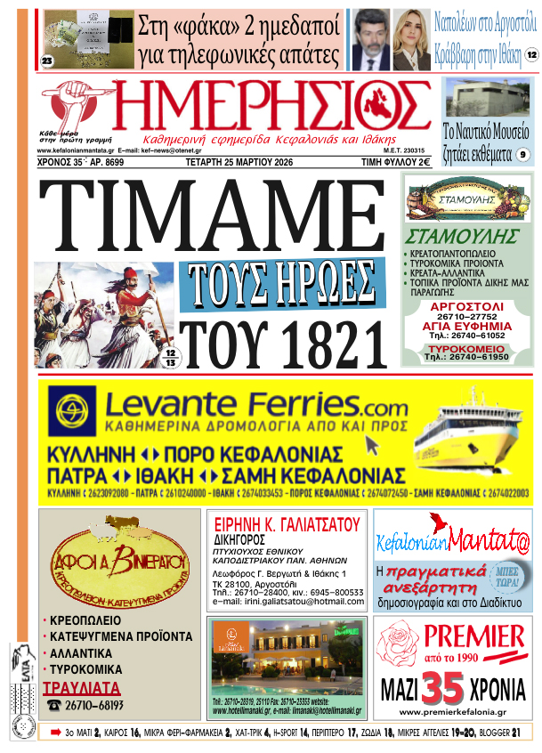 Το πρωτοσέλιδο του "Η"