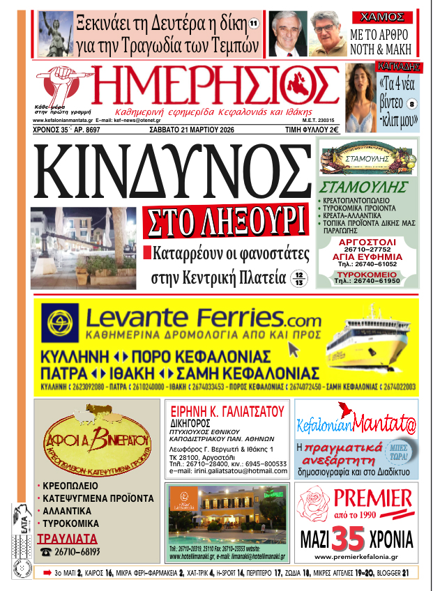 Το πρωτοσέλιδο του "Η"