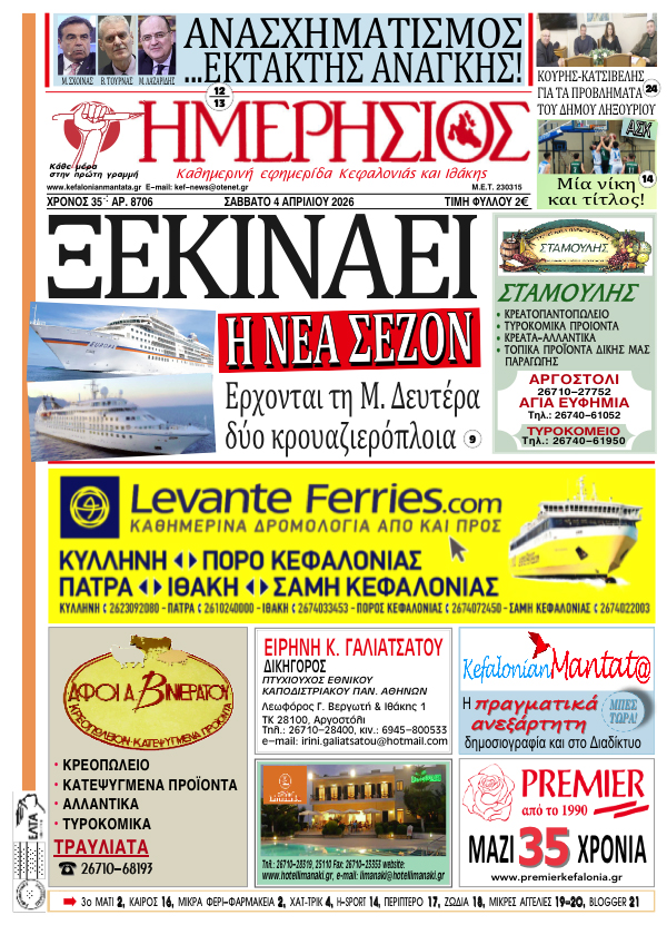 Το πρωτοσέλιδο του "Η"