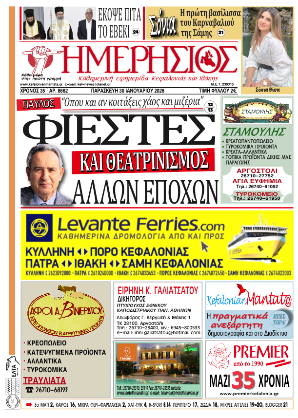 Το πρωτοσέλιδο του "Η"