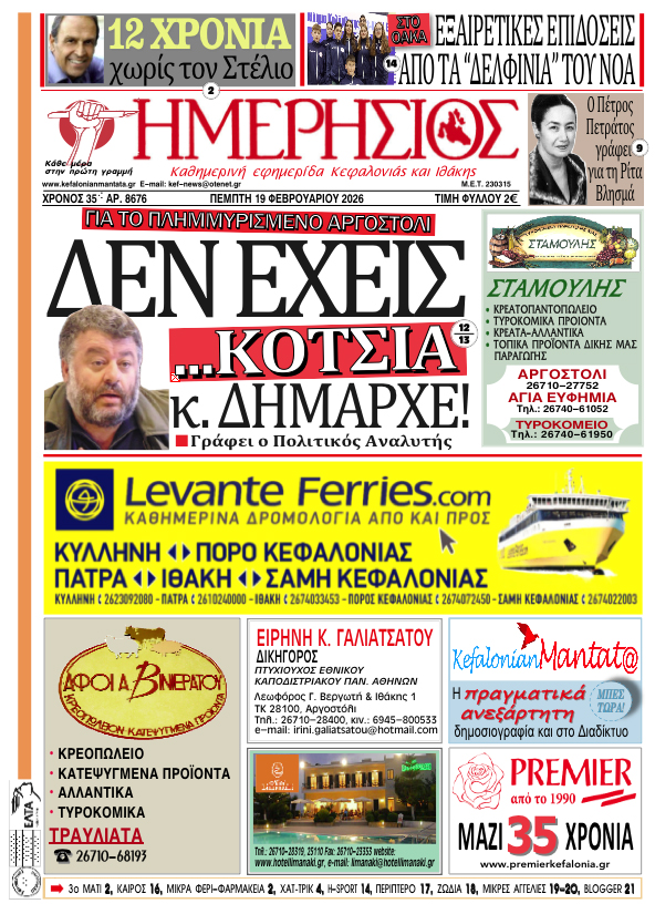 Το πρωτοσέλιδο του "Η"